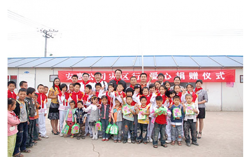 2009年5月14日,安惠公司為德陽(yáng)市綿竹拱星小學(xué)的孩子們送去“愛(ài)心包裹”